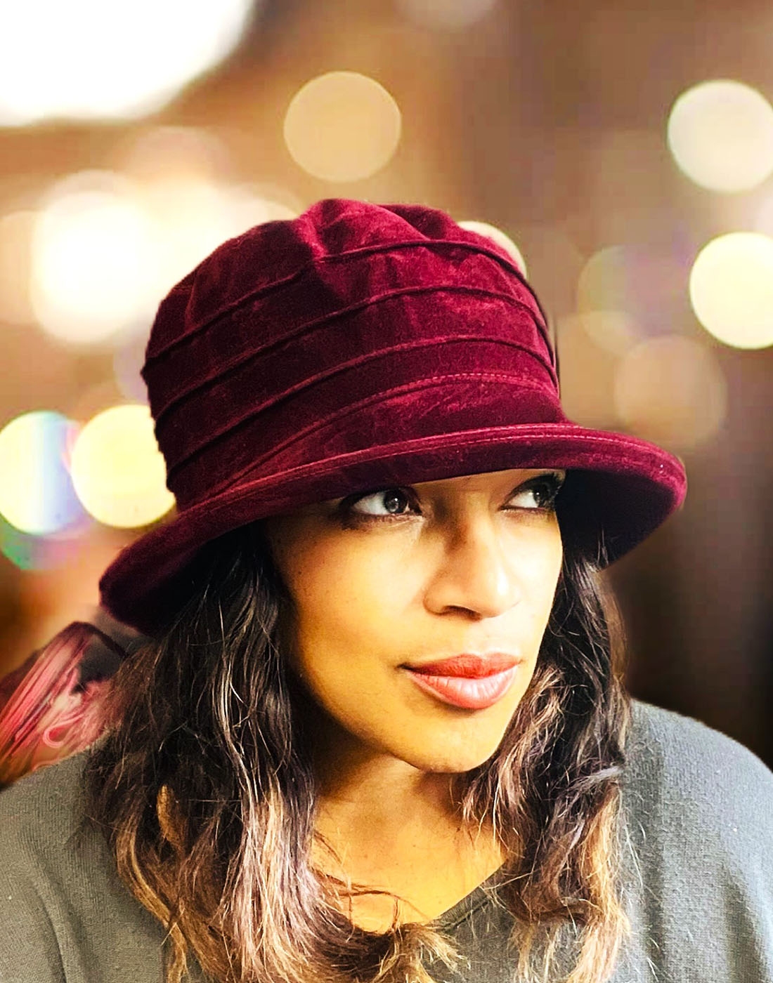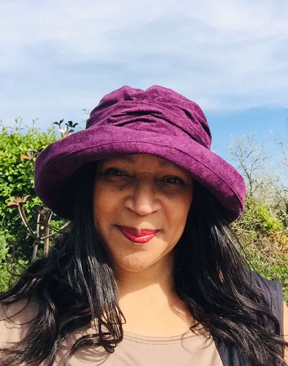 The hat was as described, very pretty nice colour and fitted beautifully. The fabric was soft and sat well on the head. I've had several hats from Peak and Brim always nicely made and quality products thank you.